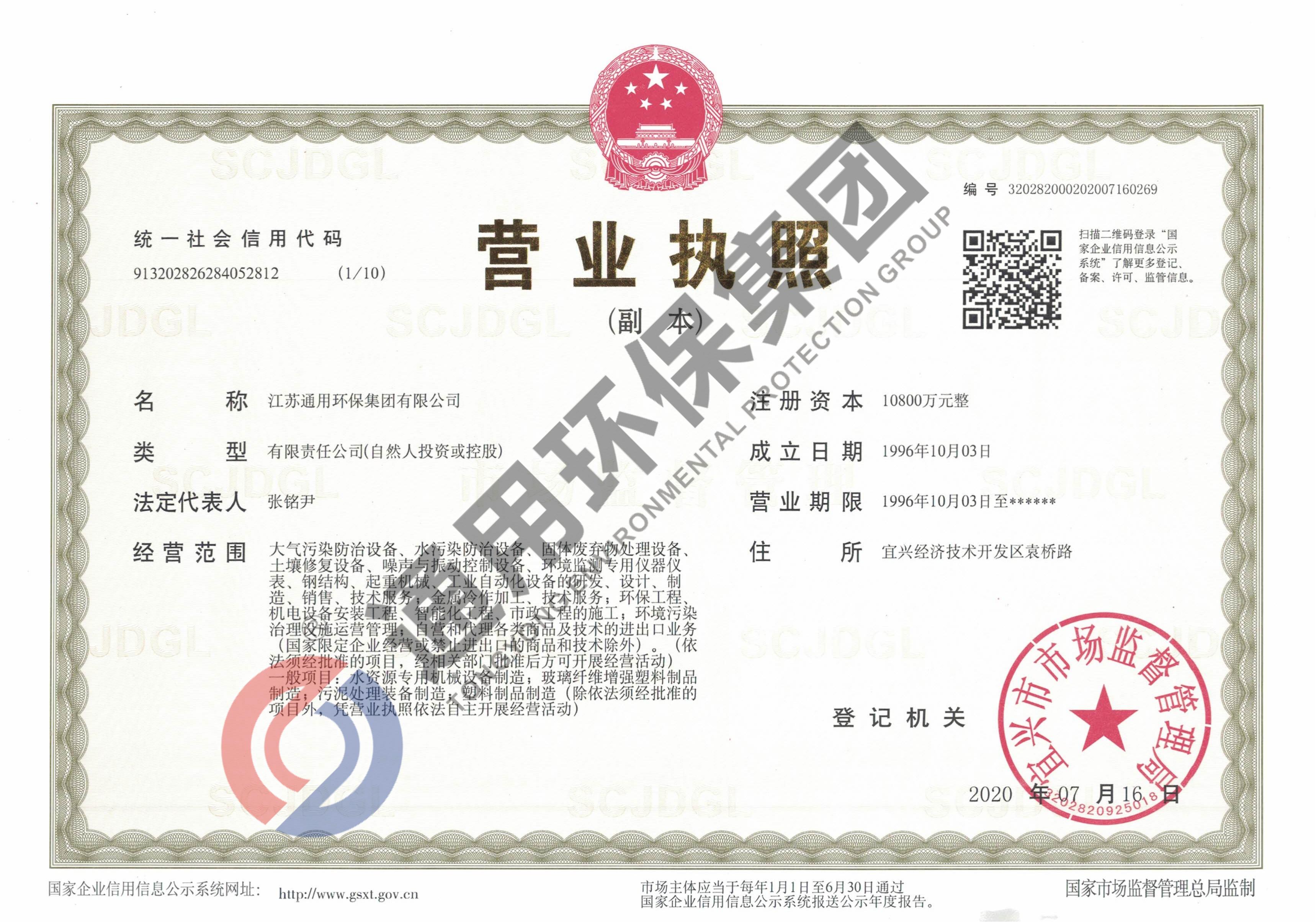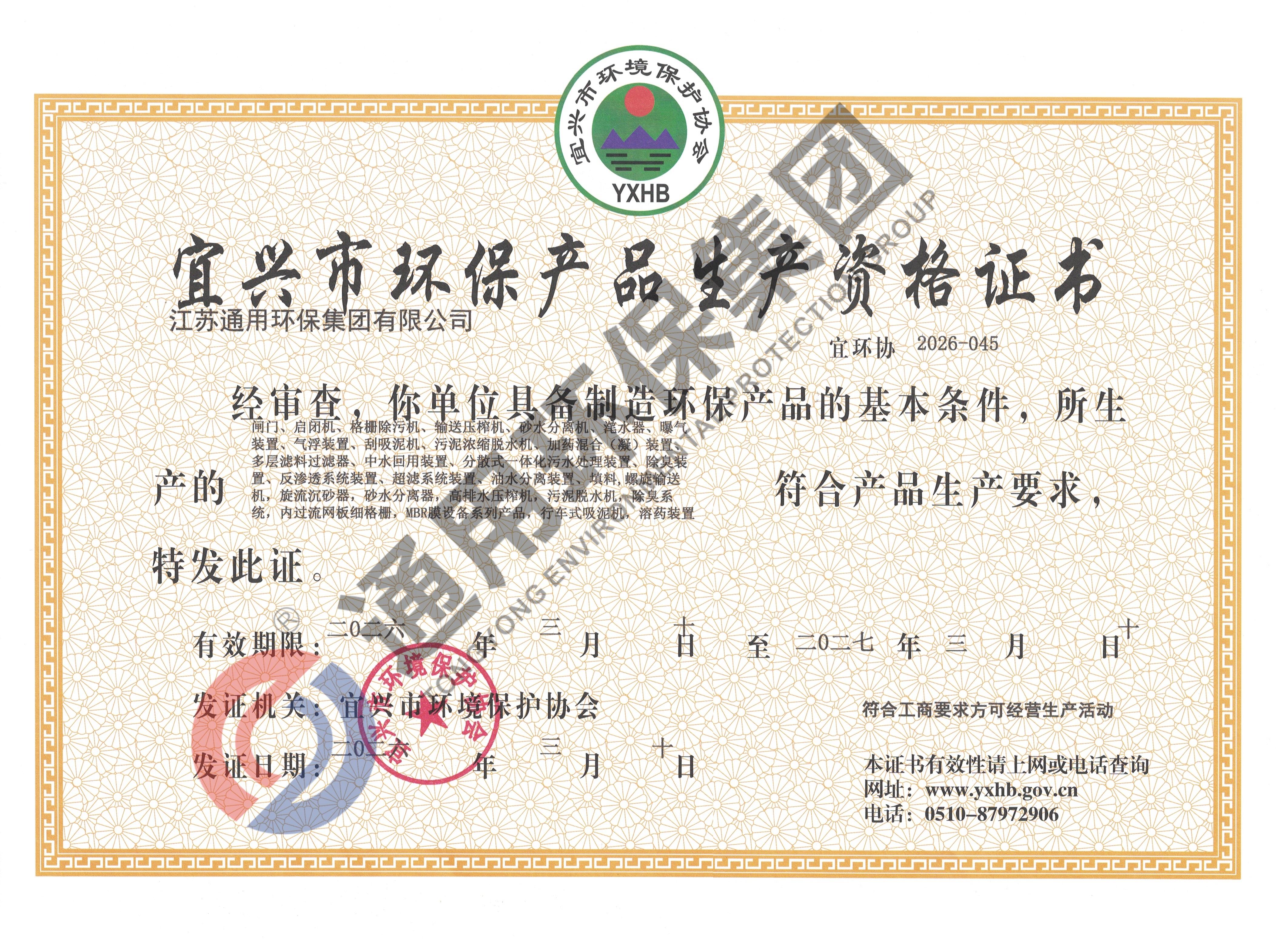 宜兴市环保产品生产资格证书