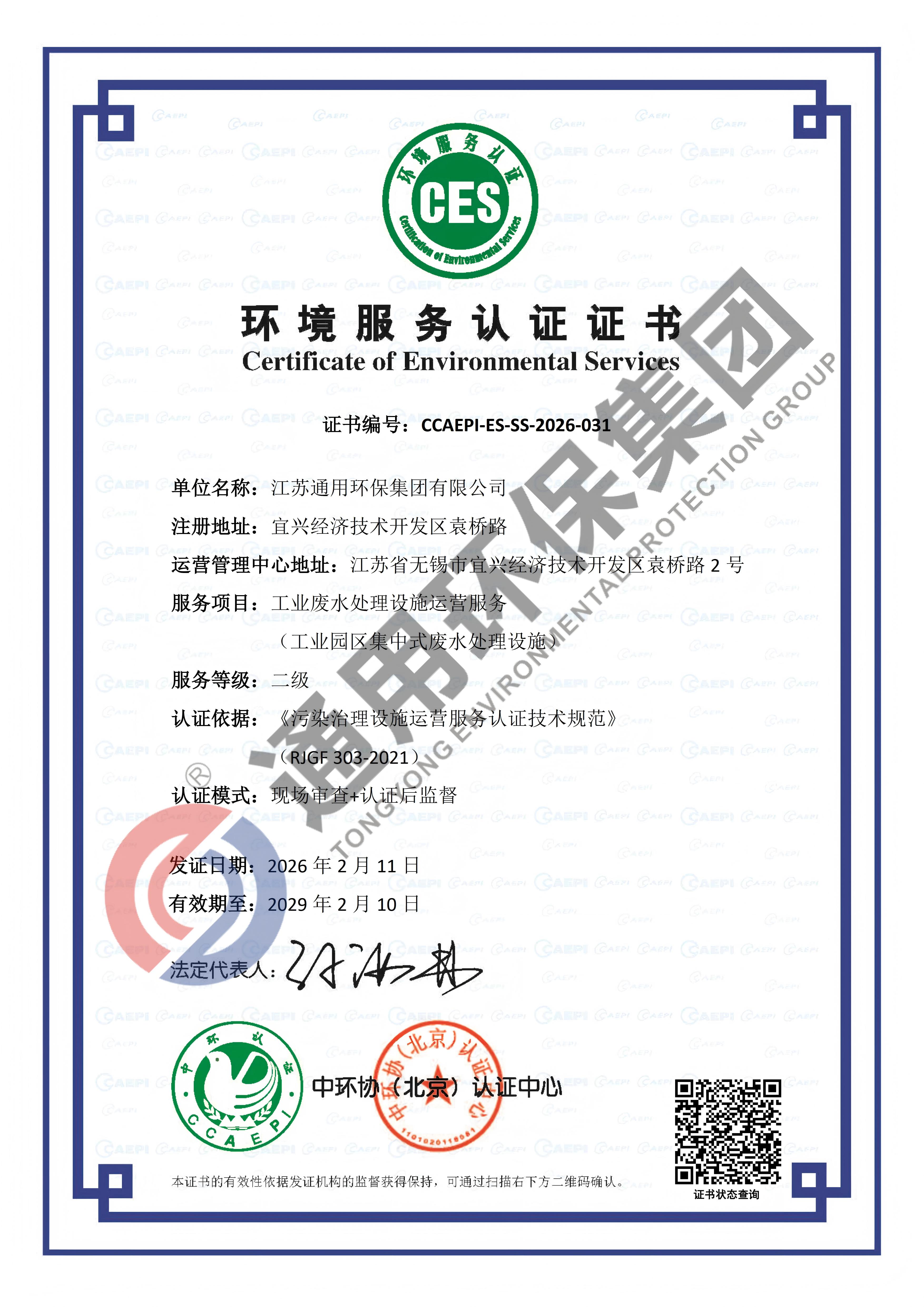 工业废水处理设施运营服务证书