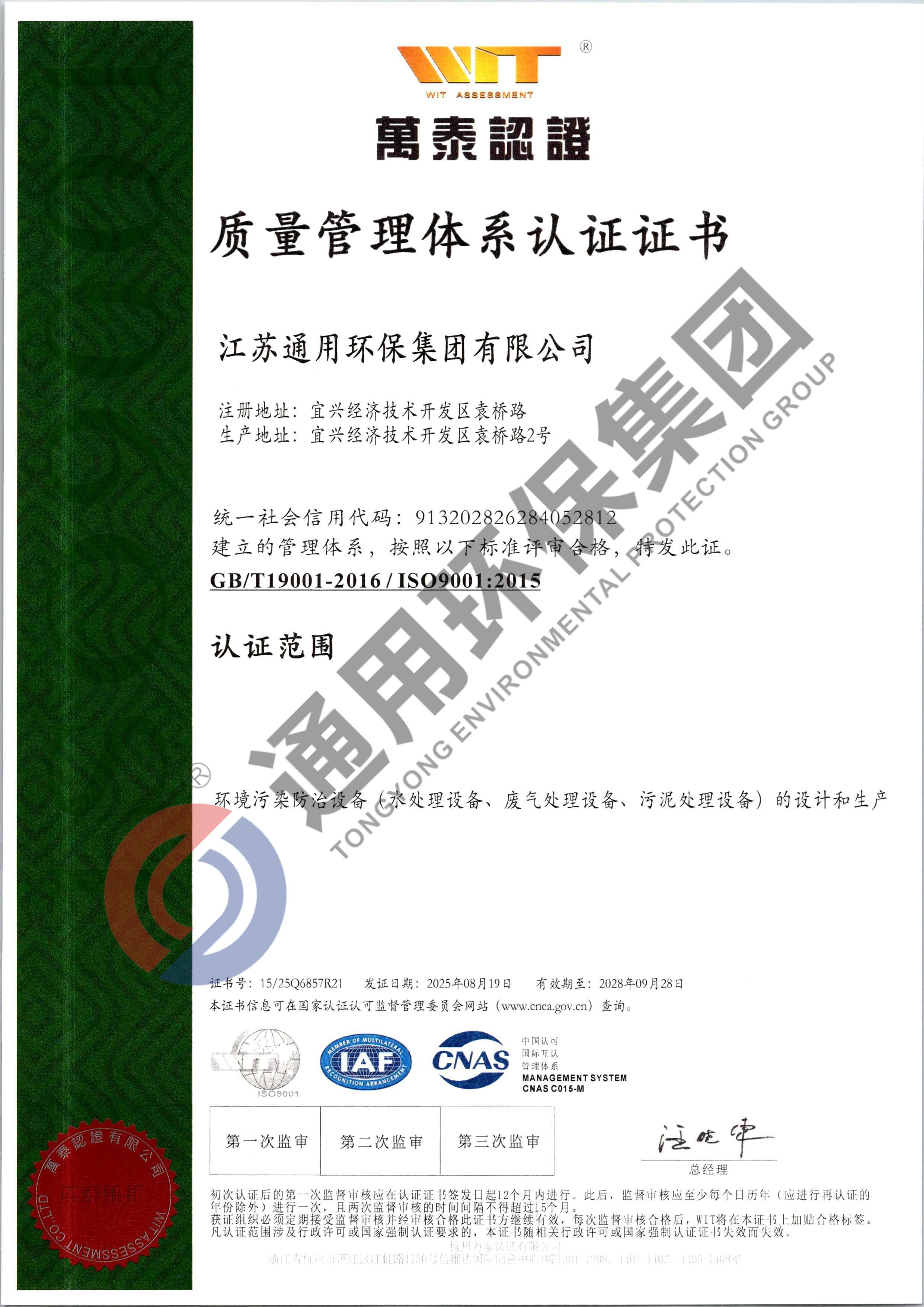 ISO14001认证证书