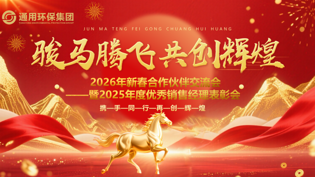 2月26日下午,江苏通用环保集团有限公司顺利举行2026年新春合作伙伴交流会暨2025年度优秀销售经理表彰大会。公司领导、合作伙伴与销售团队在复盘与嘉奖中凝聚力量,在交流与展望中深化共识。乘着丙午马年的东风,集团将与各界伙伴同心同行,以实干绘就2026发展新蓝图,共筑环保事业长青基业。